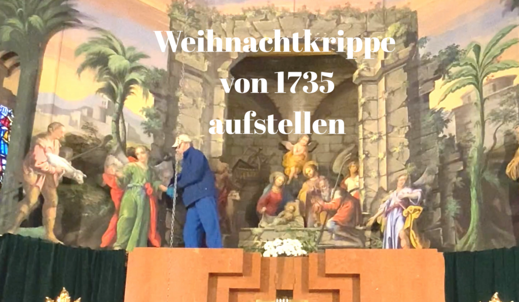 Aufstellen einer barocken Weihnachtskrippe in der Franziskanerkiche Schwaz.